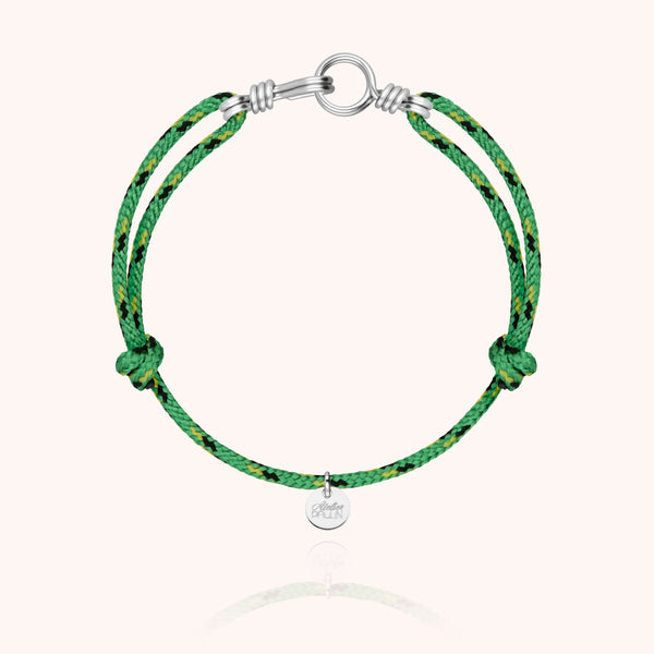Silver variation of our "Attache-moi" bracelet, this model is distinguished by its Knot cord inspired by parachute thread. Robust, adjustable, and decidedly unisex, it modernizes the symbolic jewelry of the house. Its iconic solid silver clasp makes it a strong and timeless piece, handcrafted in our Parisian workshops. To be worn alone or stacked, summer or winter.