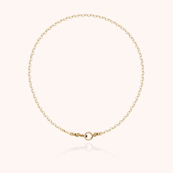 Pensé comme un bijou à offrir, ce ras de cou en édition limitée dévoile le fermoir Attache-moi sur une délicate chaîne cœur en or jaune laminé. Une création faite main dans nos ateliers, imaginée pour célébrer les liens qui comptent. Un bijou court, intime, chargé d’émotion – parfait pour dire je t’aime.