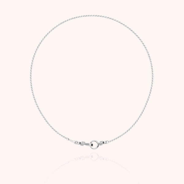 Une pièce subtile, mais pleine de sens. Ce collier ras de cou en argent sterling met en avant le fermoir Attache-moi, porté ici sur une chaîne Rope épurée. Une création artisanale, pensée pour se porter proche du cœur et incarner l’intime, le lien précieux, celui qui ne se défait jamais.