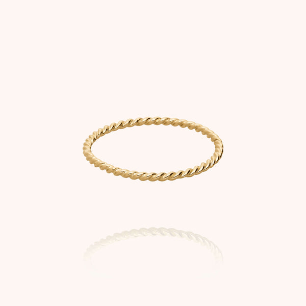 Torsadée à la main par un artisan joaillier, trois fils d'or s'entremêlent et forment un anneau intemporel. La bague Héra peut être portée comme alliance ou comme symbole d'un attachement fort.