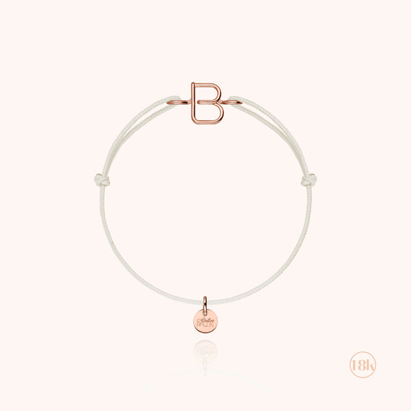 Un cadeau unique pour les moments spéciaux de la vie - une initiale gravée qui capture l'essence de l'émotion. Idéal pour les naissances, les baptêmes et toutes les occasions mémorables. Le bracelet met en valeur des initiales délicatement façonnées à partir d'un précieux fil d'or 750/1000, soigneusement confectionné à la main. Chaque pièce est personnalisée avec la lettre de votre choix, créant ainsi un lien précieux avec celui ou celle qui le porte. Montée sur un bracelet cordon en coton coloré, cette création intemporelle est spécialement conçue pour les enfants, alliant élégance et durabilité pour accompagner votre être cher dans toutes ses aventures.