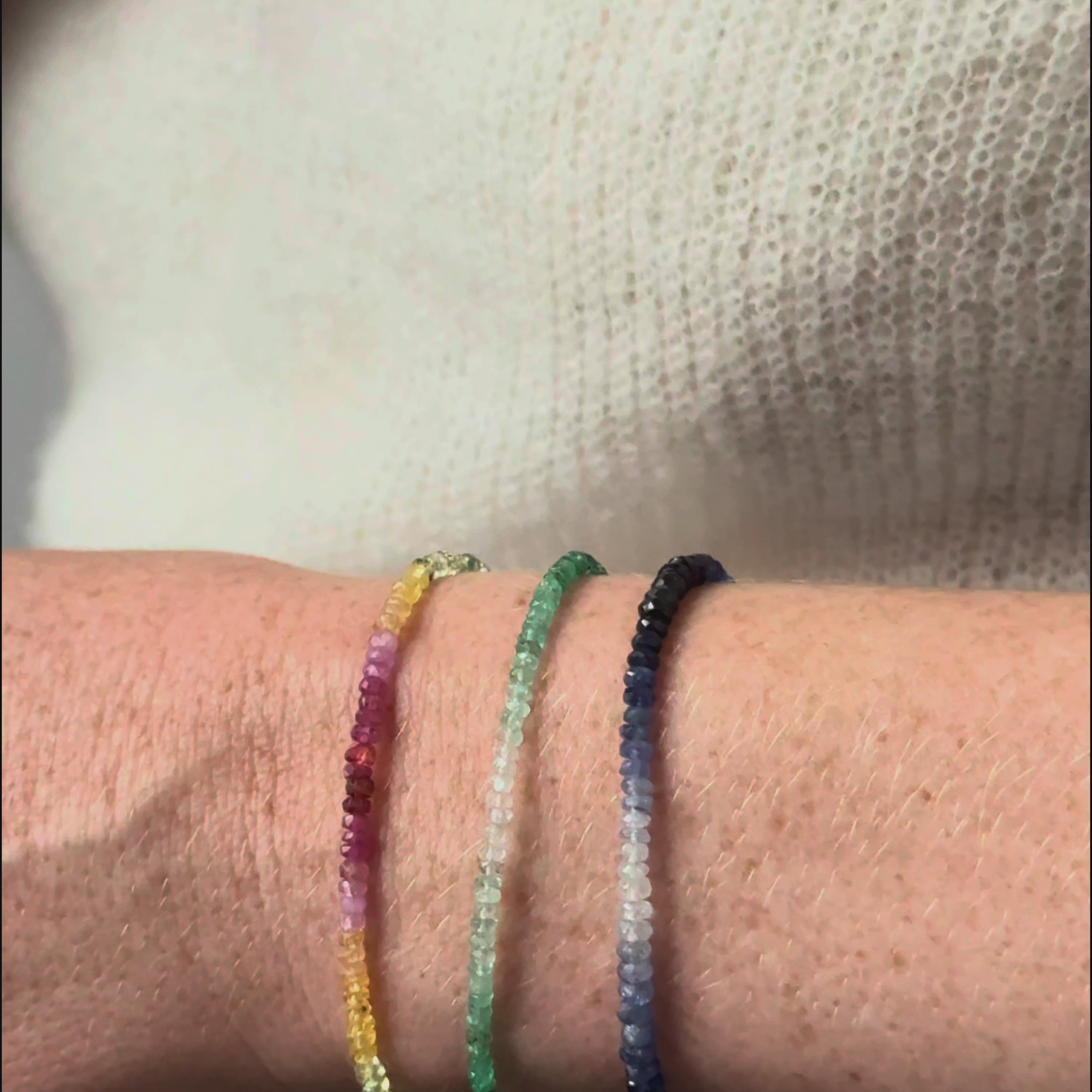 Une rivière d'émeraude se glisse autour de votre poignet. Les pierres précieuses du bracelet sont sélectionnées et assemblées à la main dans notre atelier parisien.