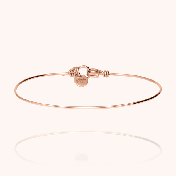 Façonné à partir d’un unique fil d’or rose laminé 585/1000, ce bracelet allie délicatesse et modernité. Son design épuré et son fermoir iconique révèlent le savoir-faire artisanal de notre atelier parisien. Une pièce qui se porte seule ou avec vos créations personnalisées