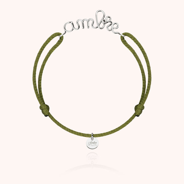 Épuré et moderne, le bracelet Cordon Original Personnalisé en or blanc 750/1000 met en valeur la pureté d’un mot ou d’un prénom. Chaque bijou est façonné à la main et monté sur un cordon satiné coloré. Un design unisexe, intemporel et porteur d’émotion.