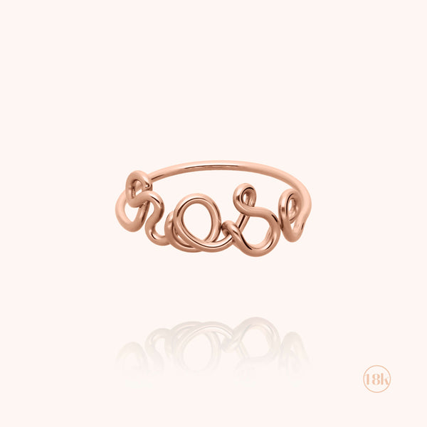 La bague à personnaliser d'un mot, d'un prénom ou d'initiales est façonnée d'un fil d'or par les artisans de la Maison. Modèle iconique, la bague personnalisable est porteuse de précieux messages.