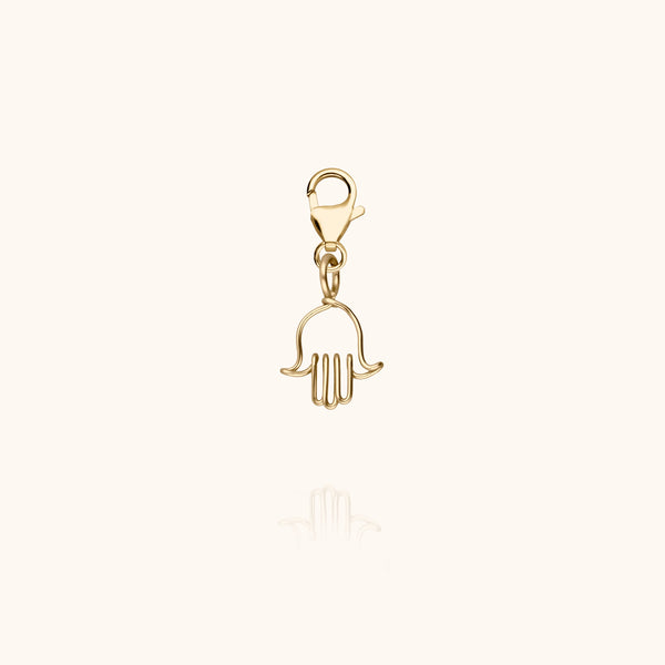 Chargé de symbolique le charms pendant Main de Fatma est précieux et spirituel pour son porteur. Ce charms en or jaune laminé 585/1000 est façonné à la main et monté sur un charms locket qui permet à son propriétaire de l'accrocher sur la chaîne Largo et Biscayne avec délicatesse.