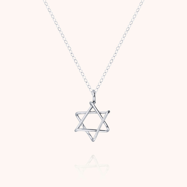 En or blanc 750/1000, l’étoile de David dévoile un éclat pur et moderne. Ce collier façonné à la main incarne la spiritualité et l’élégance, un bijou à transmettre de génération en génération.