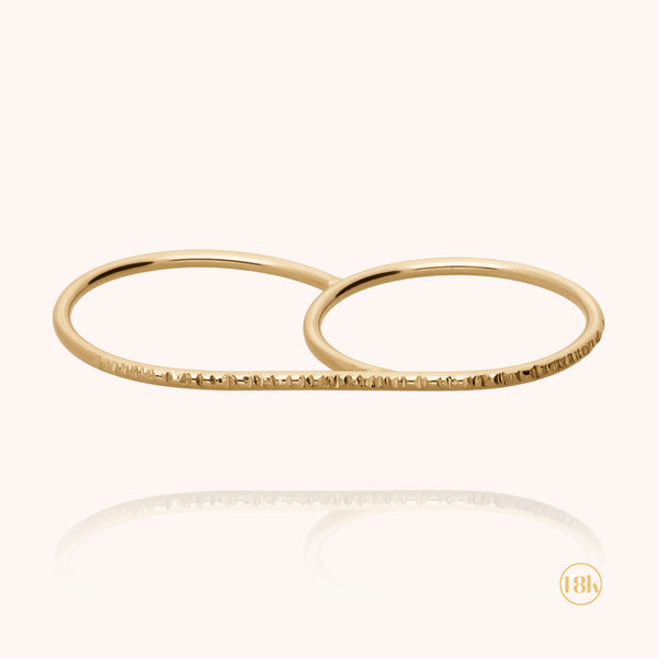 Unique, the Artémis double ring slips onto your index and ring fingers. A pure, delicate line, shaped and hammered by hand in our Workshop.
