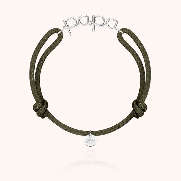 Le bracelet cordon est un bijou d'expression, d'émotion symbole d'un attachement. Personnalisé avec le mot "papa", ce bracelet pour homme est façonné par les artisans est monté sur un indémodable cordon ciré en argent sterling. Une parfaite idée de cadeau pour la fête des pères.