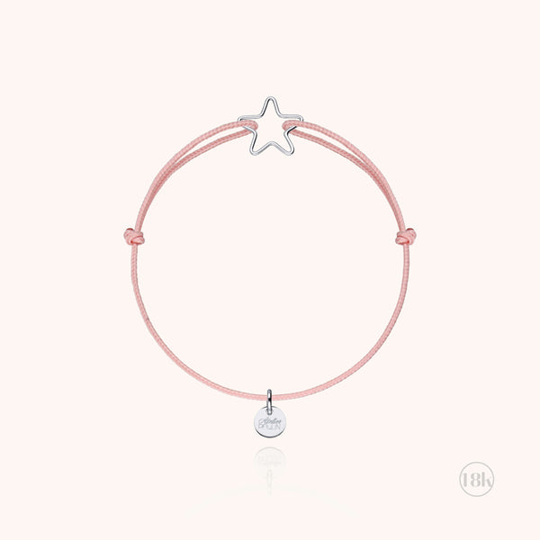 Pure et lumineuse, la petite étoile en or blanc 750/1000 symbolise la promesse d’un avenir radieux. Posée sur un cordon ajustable, elle accompagne l’enfant au fil de ses découvertes. Un bijou intemporel à offrir pour marquer un moment unique.