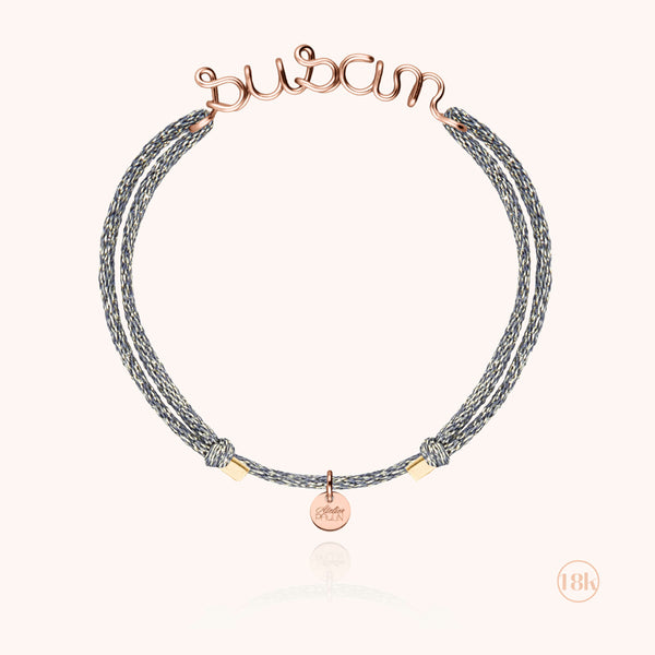 Tout en délicatesse, le bracelet cordon en or rose 750/1000 est une déclaration d’émotion. Le fil d’or massif, travaillé à la main par les artisans de l’Atelier Paulin, dessine vos mots avec poésie. Monté sur un cordon en soie et lurex scintillant, il incarne un lien unique entre élégance et sentiment. Un bijou sur mesure, tendre et raffiné.