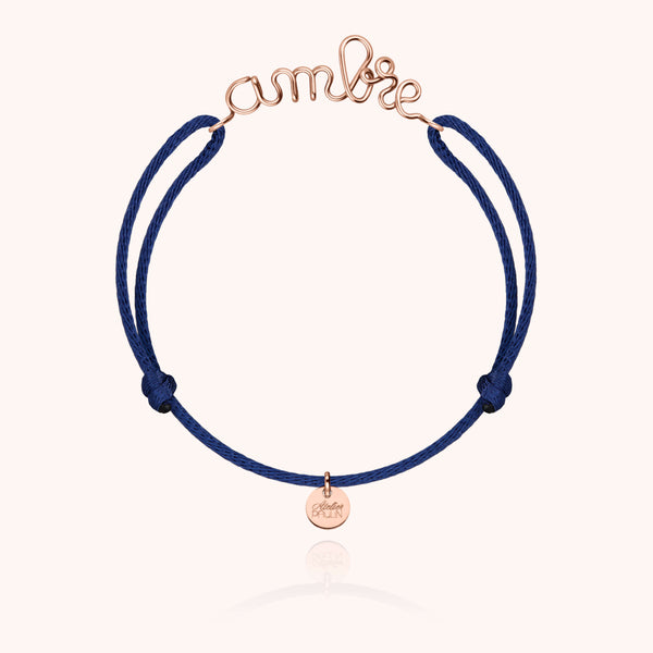Le bracelet Cordon Original Personnalisé en or rose laminé 585/1000 exprime la tendresse et la délicatesse. Chaque mot est façonné à la main dans un fil d’or rose et monté sur un cordon satiné, doux au toucher. Un bijou poétique, symbole d’amour et de raffinement.